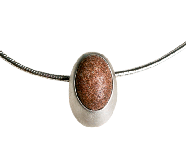 ovaler Domsandstein-Anhänger, Stein 7,5 auf 11,5 mm im Cabochonschliff, in 925 Sterlingsilber gefasst